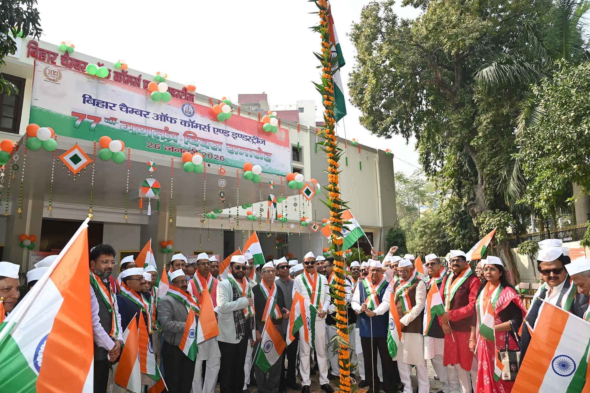 Mon, Jan 26 2026, 11am Chamber President Shri P. K. Agrawal hoisting the National flag on 26th January 2026 to celebrate the 77th Republic Day in the Chamber's Premises. On this occasion Chamber's Office Bearers and Members were also present.