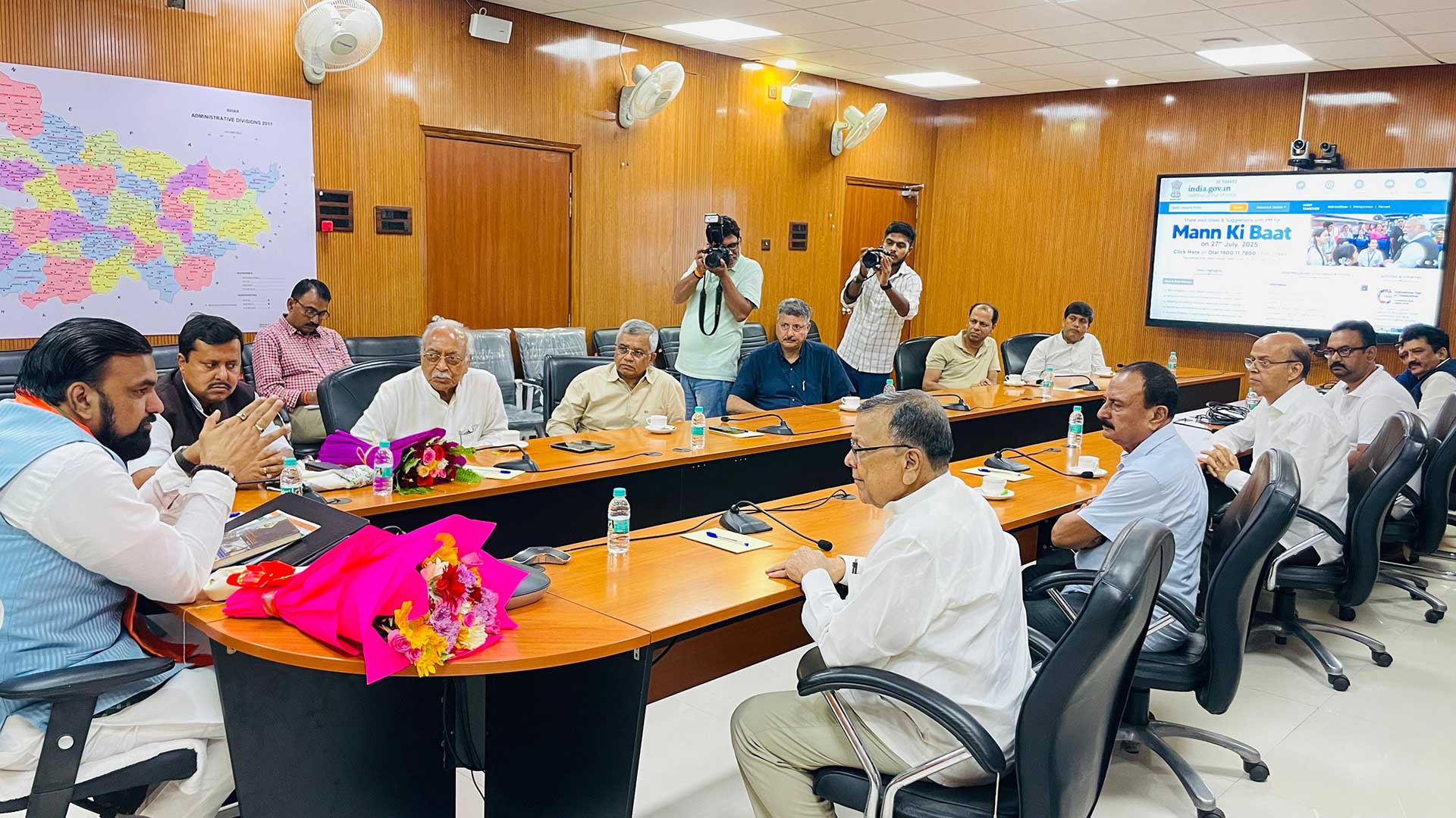 The delegation included Chamber Vice Presidents Shri Ashish Shankar and Shri Pradeep Chaurasia, Secretary General Shri Pashupati Nath Pandey, Former President Shri P. K. Agrawal, Former Vice Presidents Shri Mukesh Kumar Jain and Shri Ganesh Khetriwal, Former Hony. Treasurer Shri Vishal Tekriwal, Executive Members Shri Rajesh Jain, Shri Pawan Bhagat and Shri Ajay Gupta.