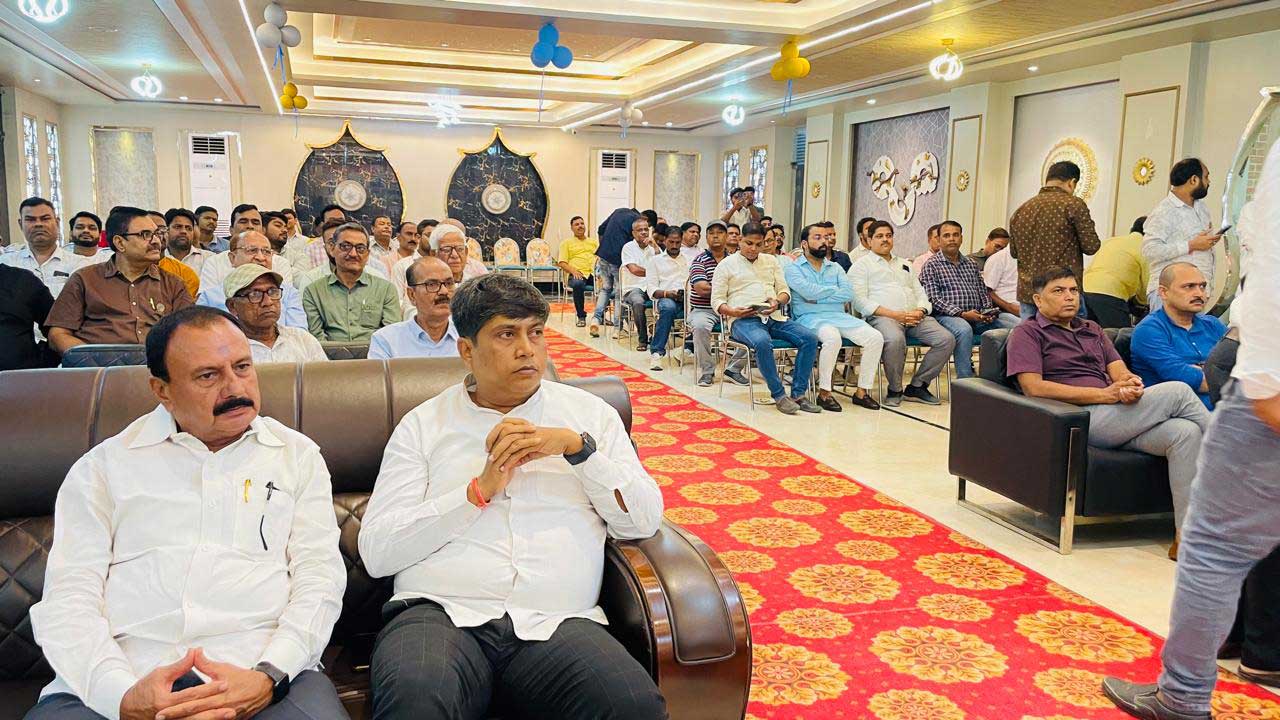 Motihari Chamber of Commerce organized a Half-Yearly Meeting at Hotel Ramson Plaza, Motihari. Shri Subhash Kumar Patwari, President, Bihar Chamber of Commerce and Industries attended the program as the Chief Guest. Chamber President Shri Subhash Kumar Patwari seated on the dais in the program. On his right are Shri Shyam Bhimsaria, State President, Laghu Udyog Bharati-Cum-President, North Bihar Chamber of Commerce, Shri Radha Mohan Singh, former Union Minister of Agriculture and Farmers Welfare, Shri Angad Singh, President, Motihari Chamber of Commerce, Shri Manish Kumar, Program Coordinator respectively. On his left Shri Alok Kumar, General Secretary, Motihari Chamber of Commerce.
