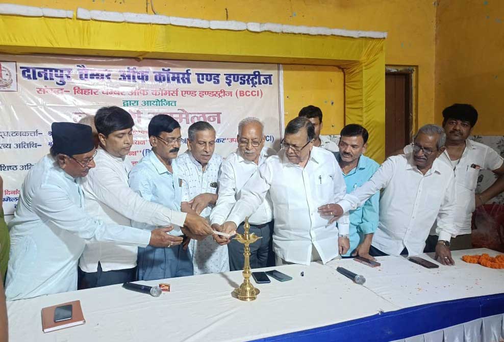 Chamber President Shri Subhash Kumar Patwari, Vice- President Shri Ashish Shankar, Secretary General Shri Pashupati Nath Pandey, Chairman, Organisation Sub-Committee Shri Ajay Gupta and President Bagaha Chamber of Commerce Shri Er. Shyam Bihari Prasad jointly inaugurated the program by lighting the lamp.