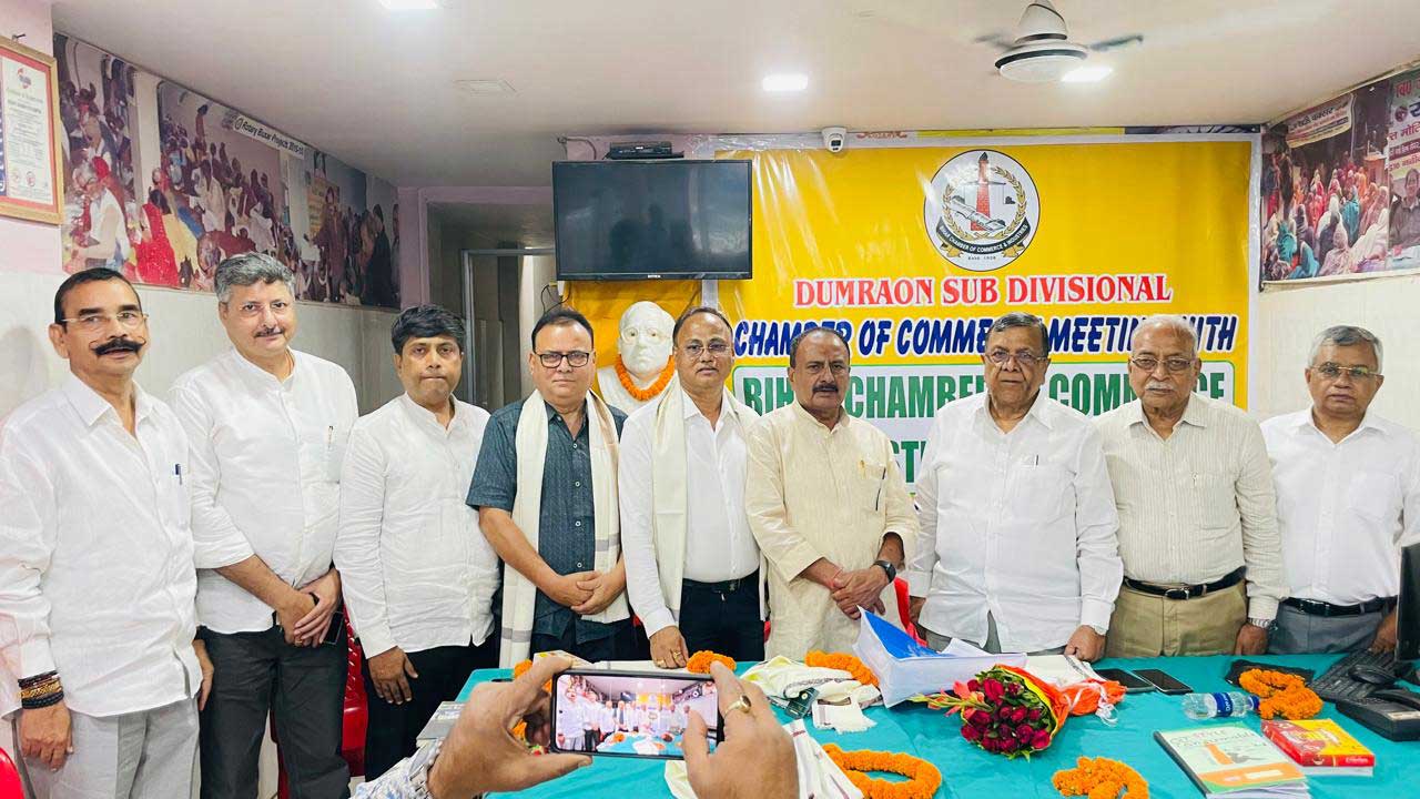 A delegation of Bihar Chamber of Commerce and Industries, led by President Shri Subhash Kumar Patwari, visited Dumraon Sub-Divisional Chamber of Commerce and held a meeting with the officials and members of Dumraon Sub-Divisional Chamber of Commerce.