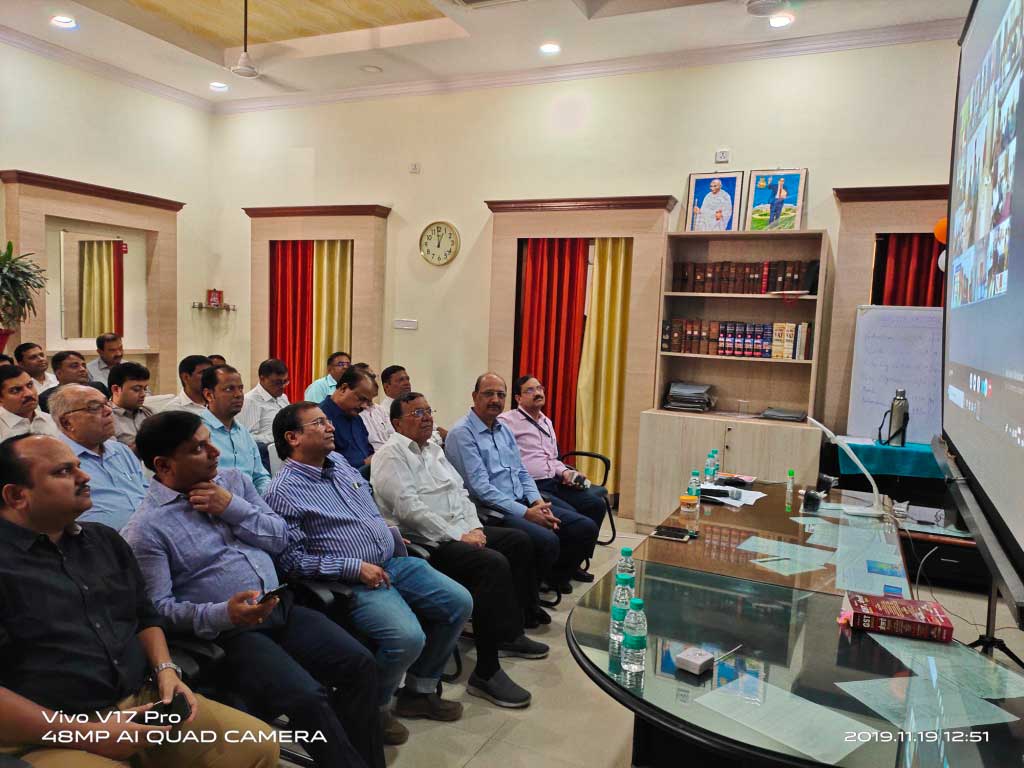 Hon'ble Deputy Chief Minister, Bihar Shri Sushil Kumar Modi addressing through Video Conferencing the Business Community and Tax Consultants of the State on GST. Chamber President Shri P.K. Agrawal, Vice-President Shri N.K. Thakur & Shri Mukesh Kumar Jain, Treasurer Shri Vishal Tekriwal, Secretary General Shri Amit Mukherji, Convenor, GST Sub-Committee Shri Alok Poddar, Executive Committee Members Shri Rajesh Khetan, Shri Sunil Saraf, Shri Ashish Agrawal and Commercial Taxes Officials were also present at the Video Conference Meeting at Commercial Taxes Department Office, Anta Ghat, Patna