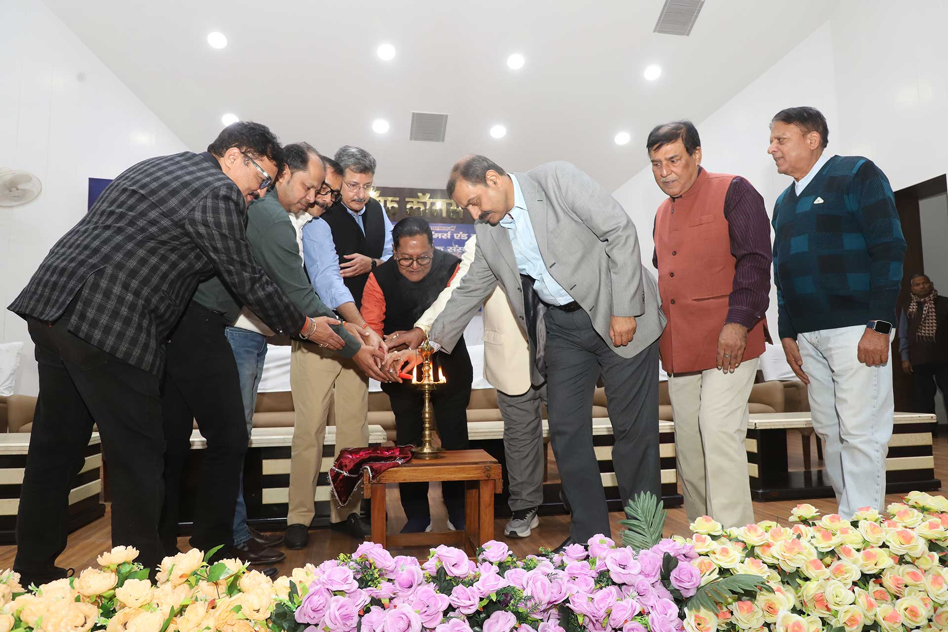 On the auspicious occasion of the centenary year, Bihar Chamber of Commerce and Industries and Manch (Cultural Organisation) was jointly organised "Sham-e-Mushaira" in the chamber premises .Chamber Vice President Shri N.K. Thakur and Shri Vishal Tekriwal, Hony. Treasurer Shri Rajesh Jain, Secretary General Shri. Mukesh Kumar Jain, Former Vice President Shri Ashish Shankar, Shri Ashok Priyadarshi and Shri Umashankar Prasad Verma of Manch (Cultural Organization) jointly inaugurated the program by lighting the lamp.
